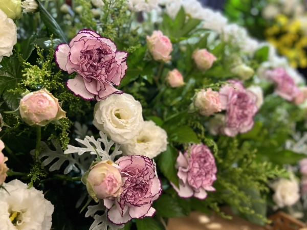 祭壇には、故人様がお好きだった色合いのお花を取り入れ、