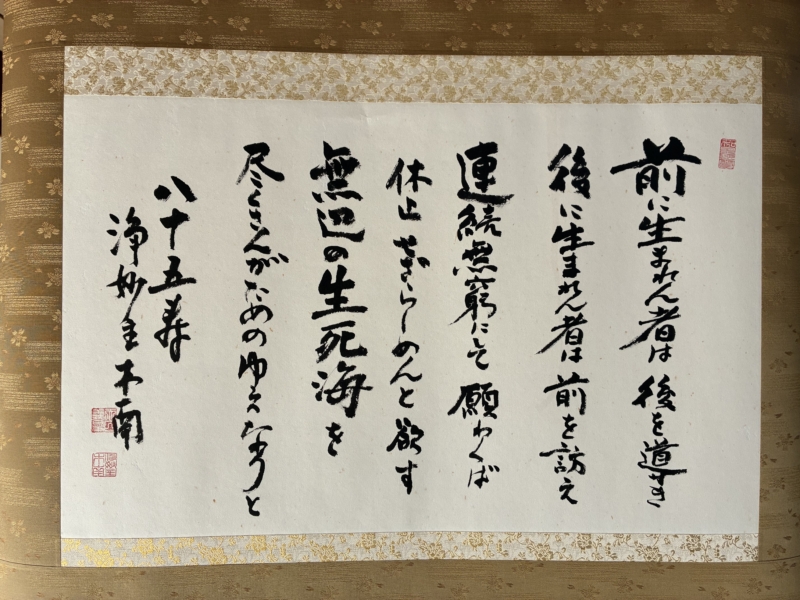 前坊守さんを送るお手伝いをさせて頂いたのが、半年前の事。その時、御年91歳の前住職は入院をされており、精神的なご負担を考えられ坊守のご葬儀の事は伏せられました。その前住職がお亡くなりになり、前住職のご葬儀もお手伝いをさせていただきました。