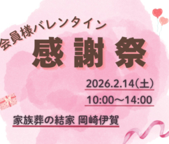 2月14日◇岡崎市にて感謝祭開催岡崎市にて大感謝祭開催決定! ◇◆「家族葬の結家 岡崎伊賀」イベント開催のご案内◆◇ g……